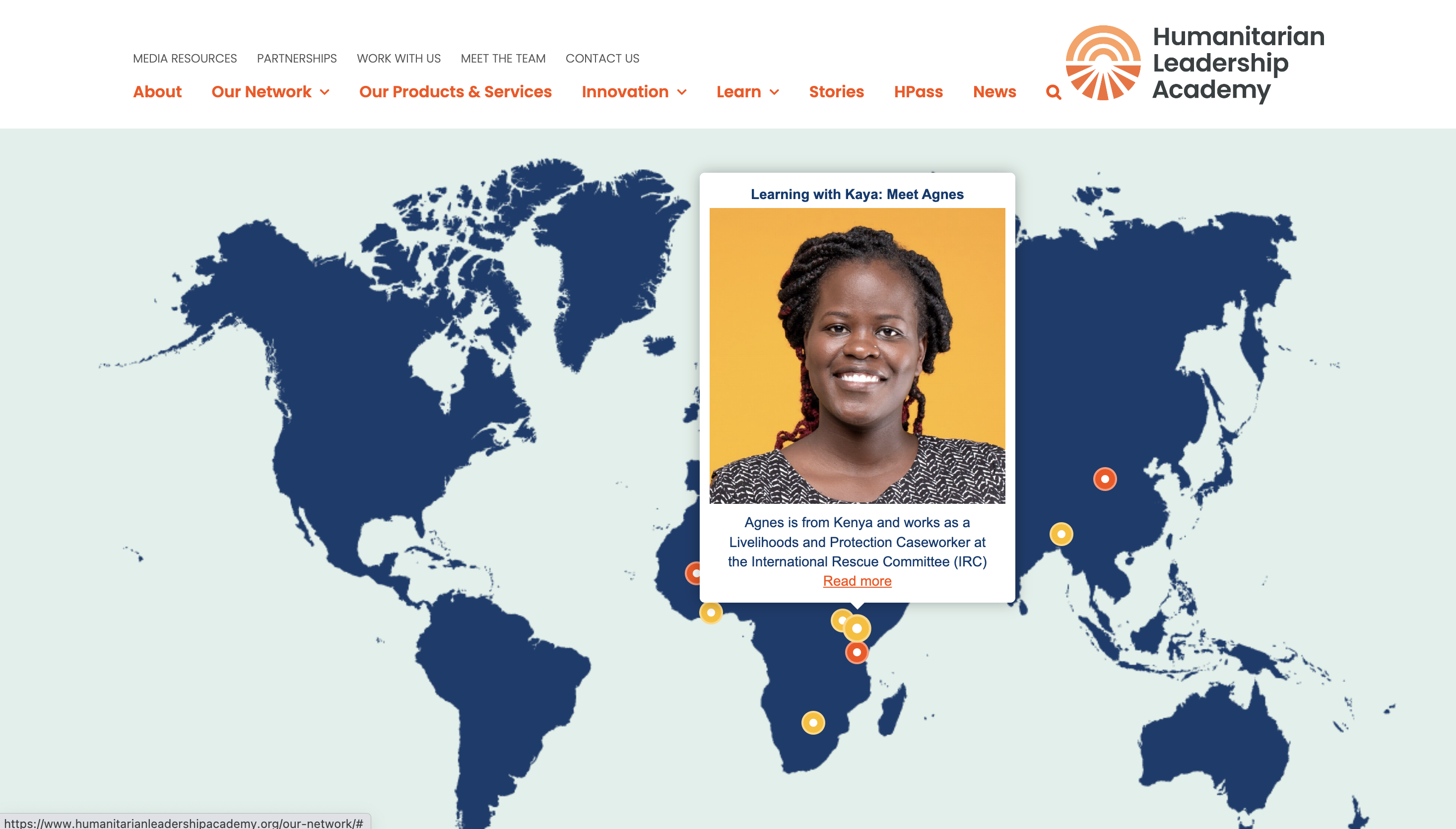 A mockup of the website design for the Humanitarian Leadership Academy charity